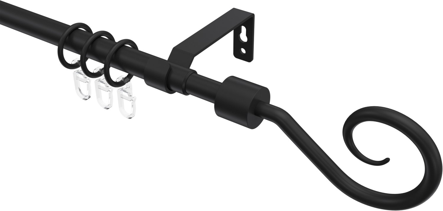 Gardinenstangen ausziehbar aus Metall / Kunststoff in 16/13 mm Ø, 1-läufig, Modell HERA - Helix Schwarz