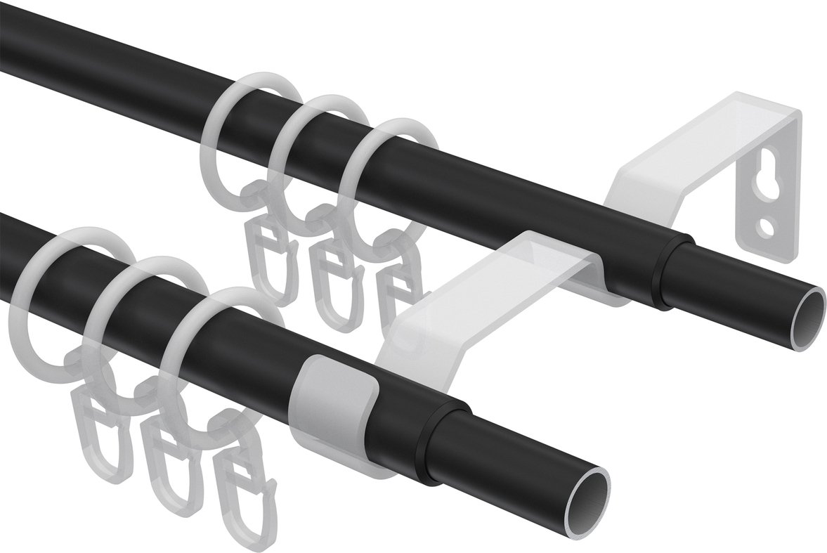 Informationen zu Ausziehbare Gardinenstange Metall / Kunststoff 16/13 mm Ø HERA - Helix Silbergrau / Schwarz: