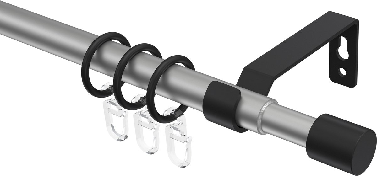 Gardinenstangen ausziehbar aus Metall / Kunststoff in 16/13 mm Ø, 1-läufig, Modell HERA - Livo Silbergrau / Schwarz