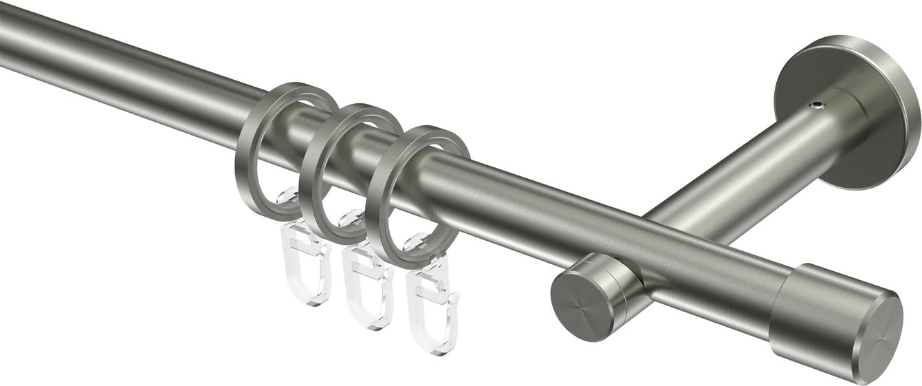 Stilvoll und modern, passt sich unsere einläufige Vorhanggarnitur Modell ENORMA - Casa mit 16 mm Ø jedem Raum mit den unterschiedlichsten Einrichtungsstilen an. Die erstklassige Verarbeitung von unserer einläufigen Stilgarnitur sowie die Verwendung von hochwertigen Materialien wie Edelstahl bei diesem Produkt verweist auf eine gute Stabilität sowie eine lange Lebensdauer. Das moderne Design von diesen Vorhanggarnituren wird bei der Fensterdekoration neben den Gardinen eine ganz besondere Rolle spielen. Setzen Sie bei der Fenstergestaltung Ihre eigenen Ideen um und verwenden Sie zum Anbringen der Gardinen unsere Vorhanggarnitur in Edelstahl. Unsere Stilgarnitur Modell ENORMA - Casa kann über vielen Fenstern und Balkontüren unterschiedlichster Breiten angebracht werden, da wir diese in vielen unterschiedlichen Größen anbieten.