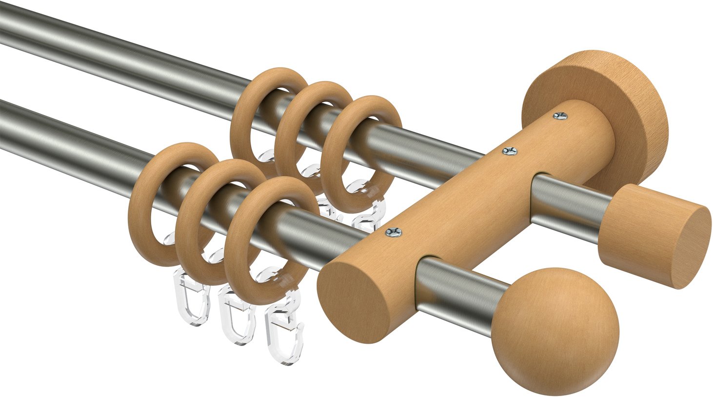 Informationen zu Gardinenstange Edelstahl / Holz Buche lackiert 16 mm Ø 2-läufig ADRIAN - Geo: