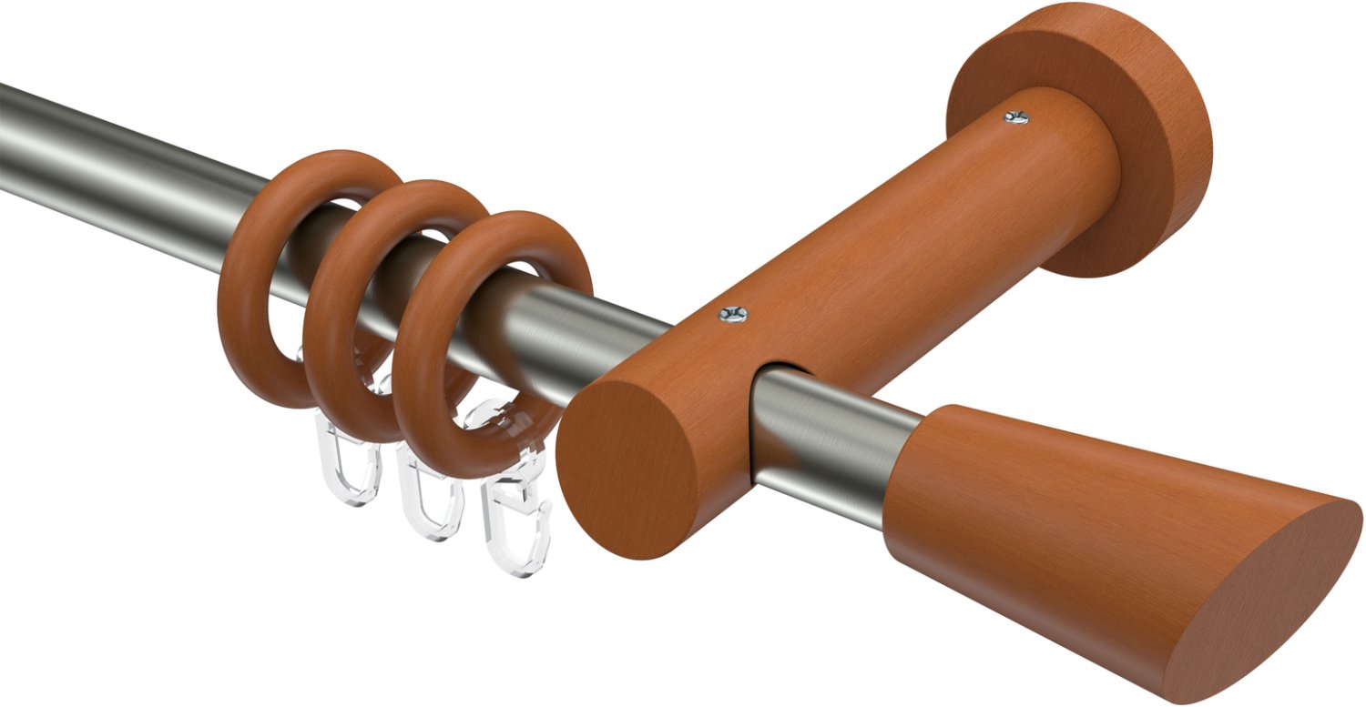 Gardinenstangen aus Edelstahl / Holz Kirschbaum lackiert in 20 mm Ø, 1-läufig, Modell TALENA - Bero