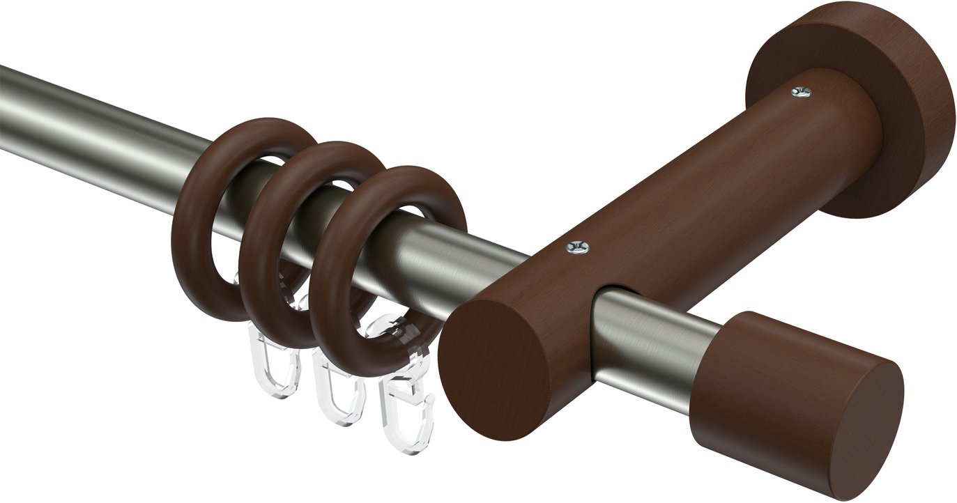 Gardinenstangen aus Edelstahl / Holz Nussbaum lackiert in 20 mm Ø, 1-läufig, Modell TALENA - Feta