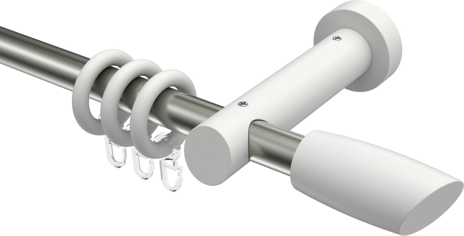 Gardinenstangen aus Edelstahl / Holz Weiß lackiert in 20 mm Ø, 1-läufig, Modell TALENA - Etta