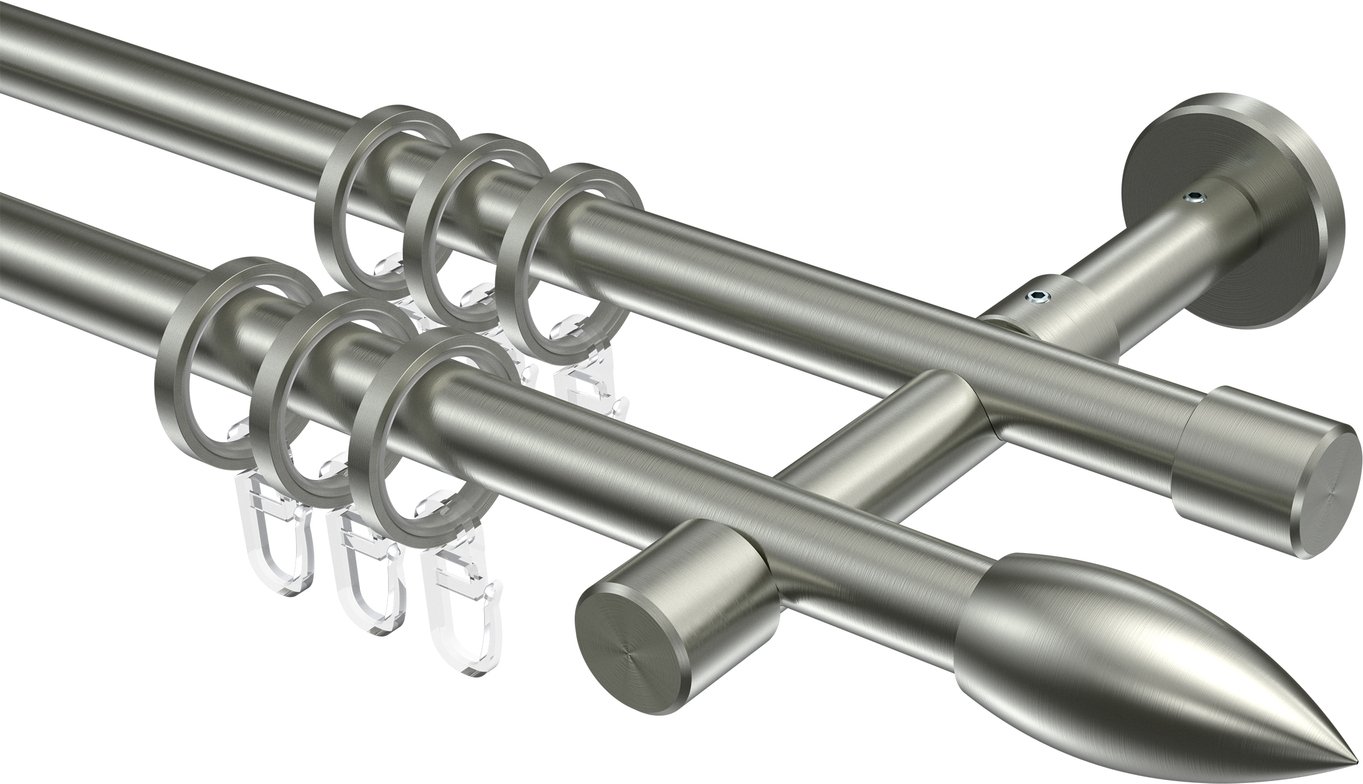 Informationen zu Gardinenstange Edelstahl-Optik 16 mm Ø 2-läufig SINUX - Poveda: