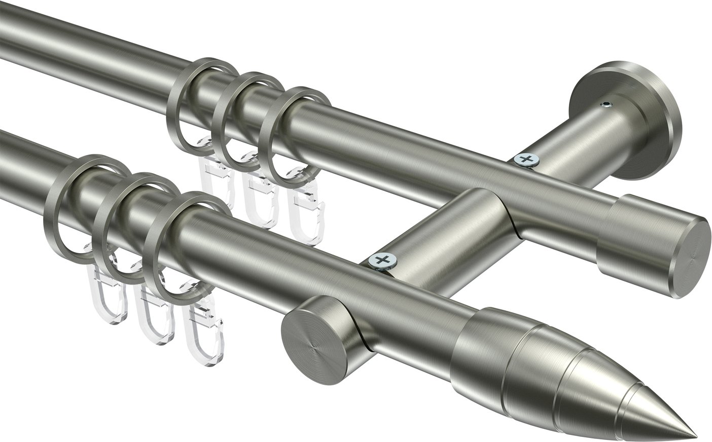 Gardinenstangen aus Edelstahl-Optik in 20 mm Ø, 2-läufig, Modell PLATON - Samanto