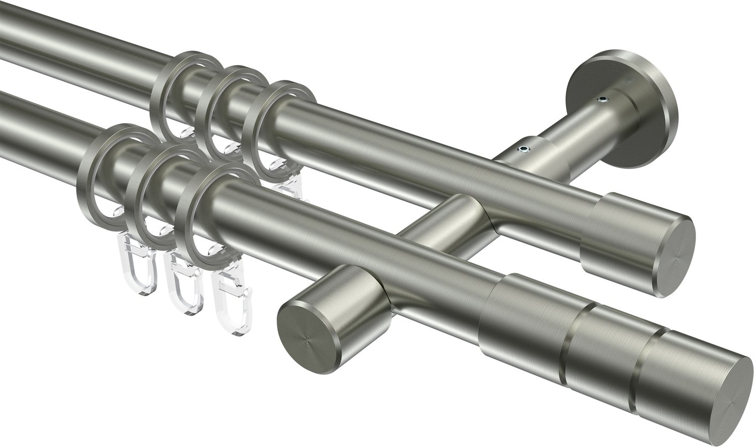 Gardinenstangen aus Edelstahl-Optik in 20 mm Ø, 2-läufig, Modell PRESTIGE - Elanto