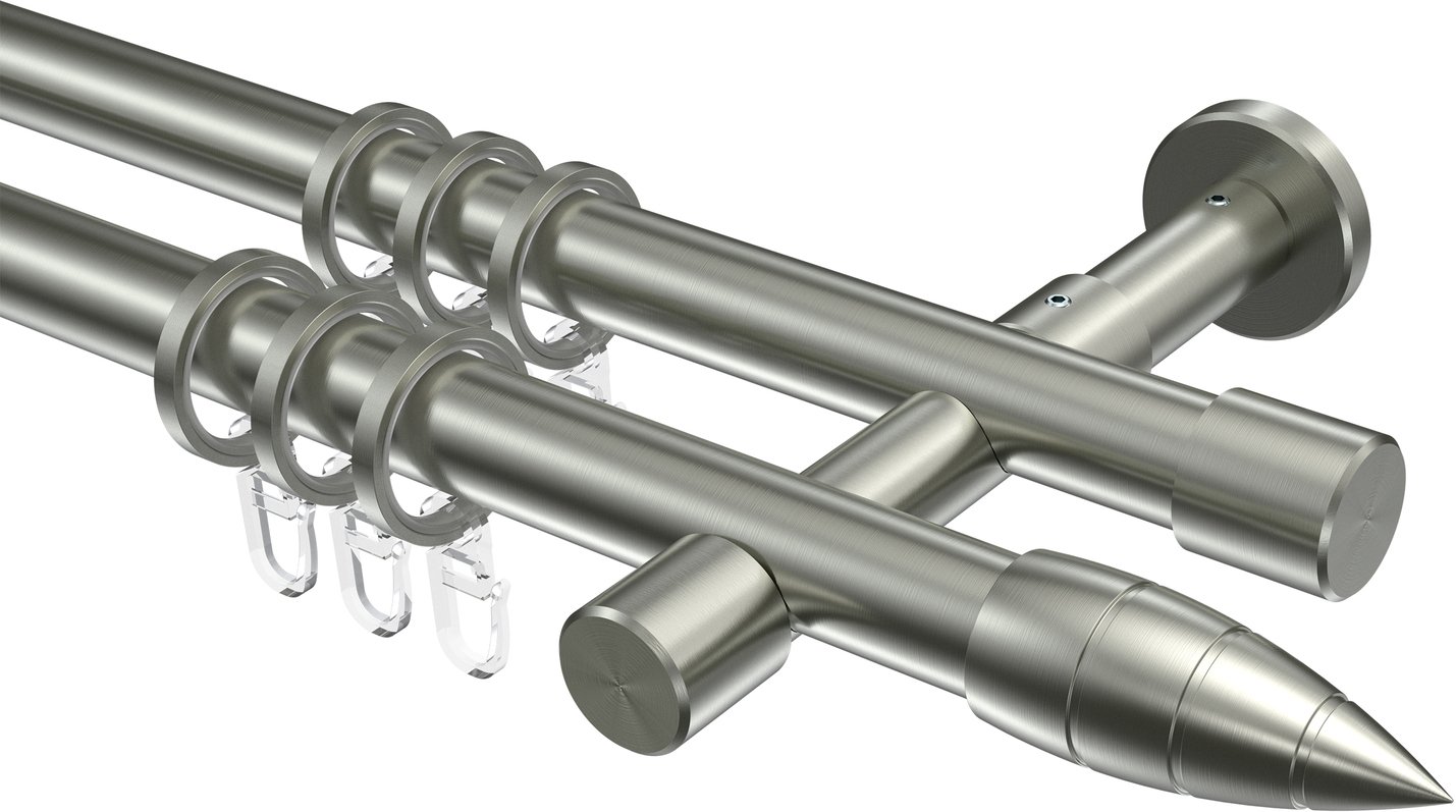 Gardinenstangen aus Edelstahl-Optik in 20 mm Ø, 2-läufig, Modell PRESTIGE - Samanto