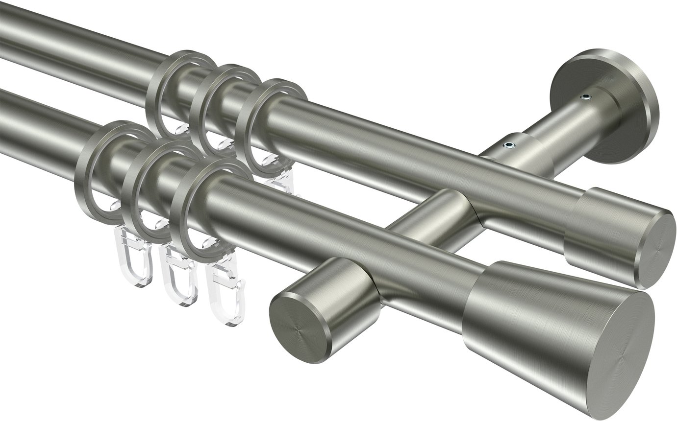 Gardinenstangen aus Edelstahl-Optik in 20 mm Ø, 2-läufig, Modell PRESTIGE - Sitra