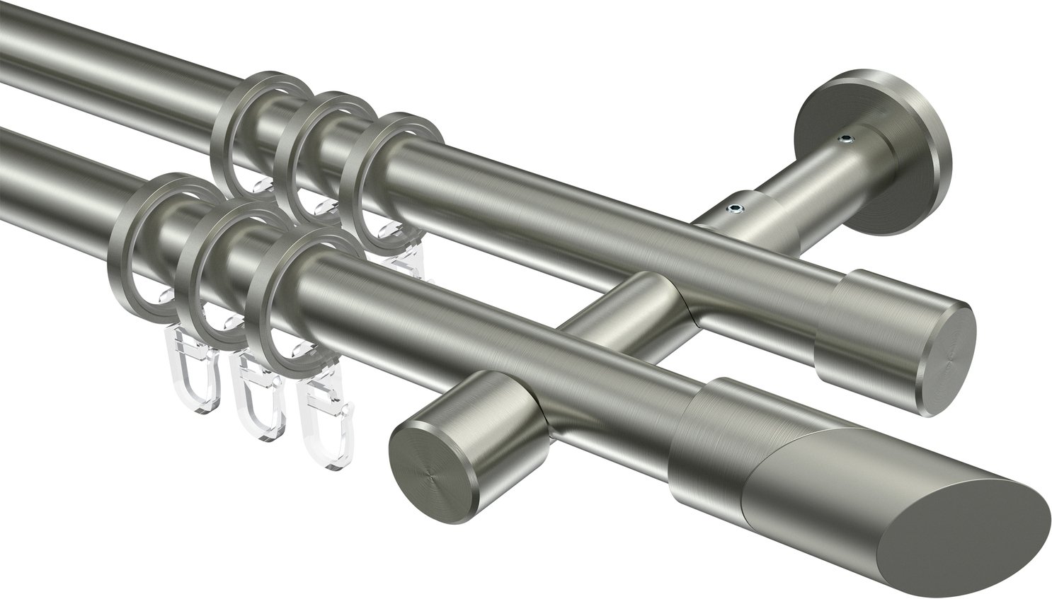 Gardinenstangen aus Edelstahl-Optik in 20 mm Ø, 2-läufig, Modell PRESTIGE - Verano