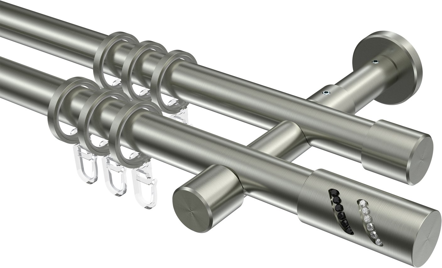 Gardinenstangen aus Edelstahl-Optik in 20 mm Ø, 2-läufig, Modell PRESTIGE - Zoena