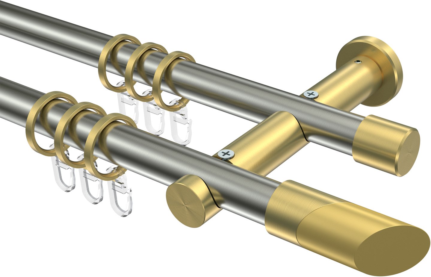Gardinenstangen aus Edelstahl-Optik / Messing-Optik in 20 mm Ø, 2-läufig, Modell PLATON - Verano