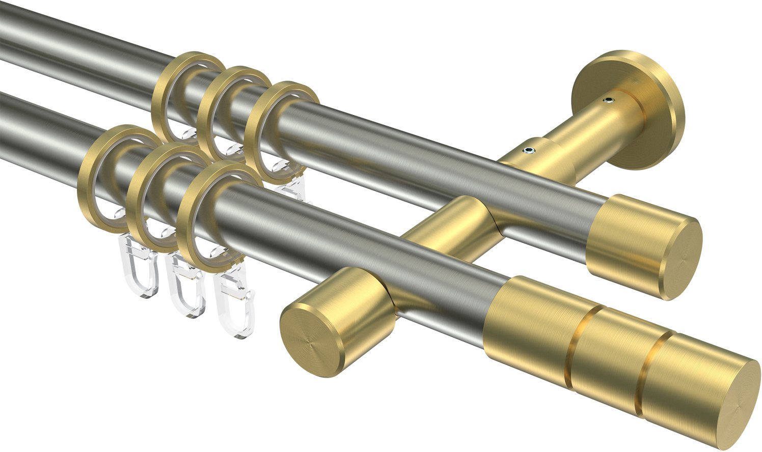 Gardinenstangen aus Edelstahl-Optik / Messing-Optik in 20 mm Ø, 2-läufig, Modell PRESTIGE - Elanto