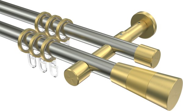 Gardinenstangen aus Edelstahl-Optik / Messing-Optik in 20 mm Ø, 2-läufig, Modell PRESTIGE - Tanara