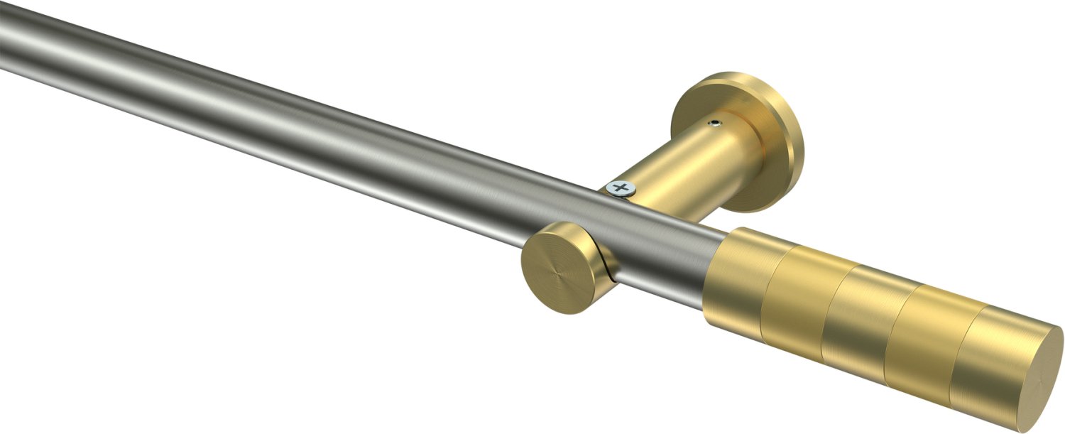 Gardinenstangen aus Edelstahl-Optik / Messing-Optik in 20 mm Ø, 1-läufig, 1-läufig, Modell PLATON - Mavell (ohne Ringe)