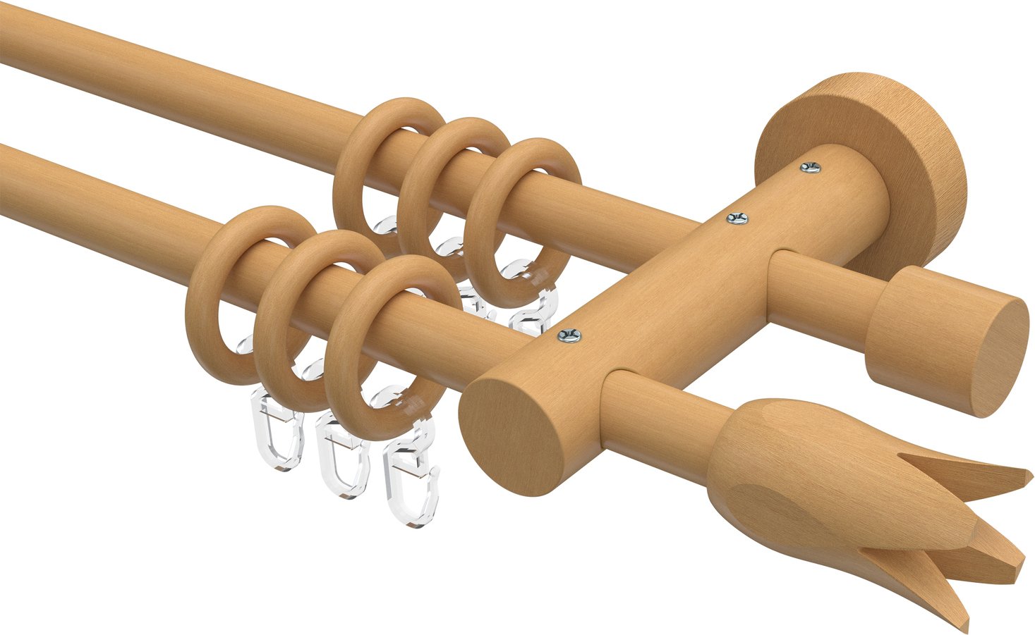 Gardinenstangen aus Holz in 16 mm Ø, 2-läufig, Modell ADRIAN - Flower Buche lackiert