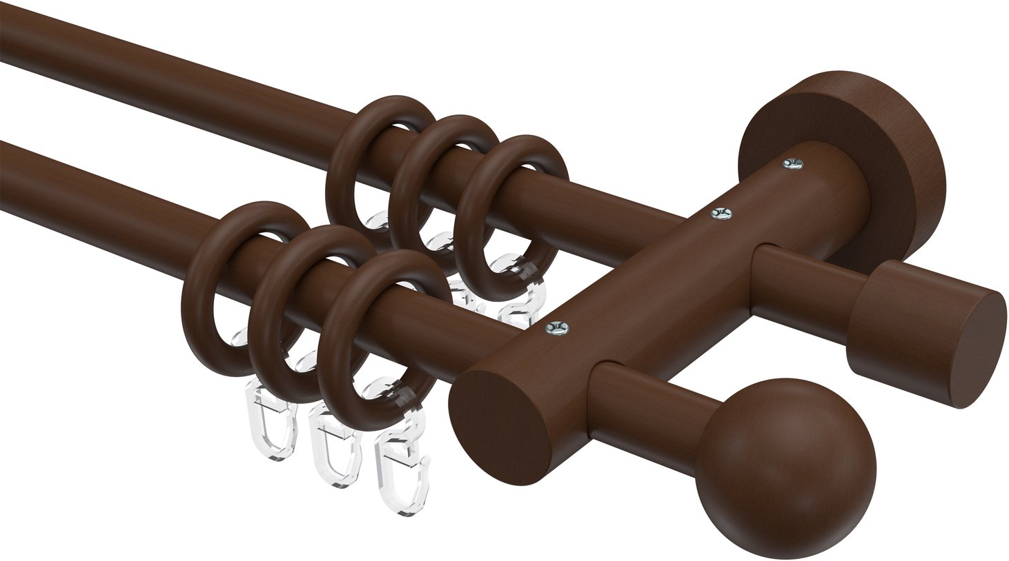 Gardinenstangen aus Holz in 16 mm Ø, 2-läufig, Modell ADRIAN - Geo Nussbaum lackiert