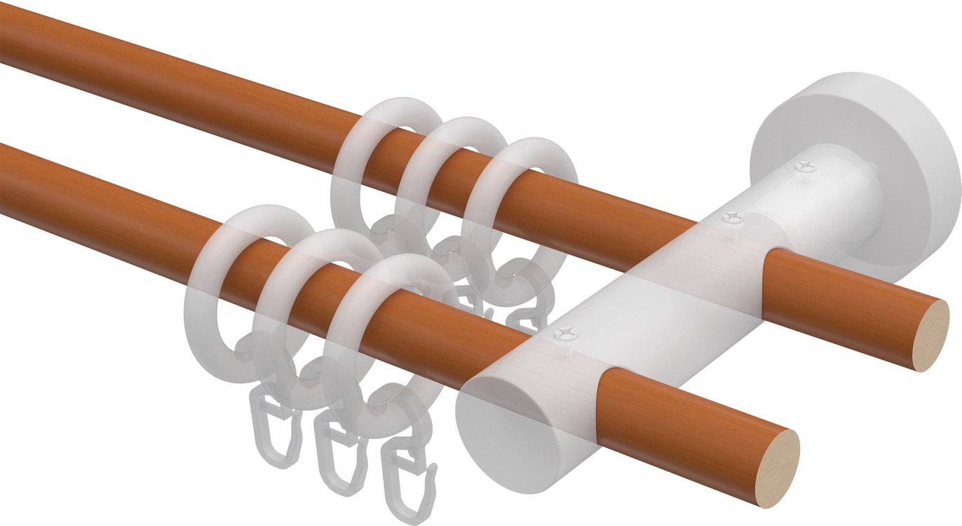 Gardinenstangen aus Holz in 16 mm Ø, 2-läufig, Modell ADRIAN - Pin Kirschbaum lackiert