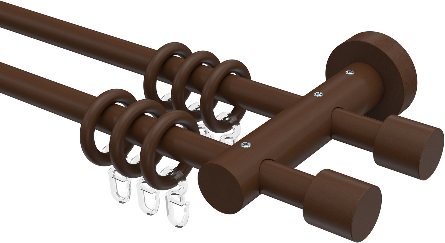 Gardinenstangen aus Holz in 16 mm Ø, 2-läufig, Modell ADRIAN - Pin Nussbaum lackiert