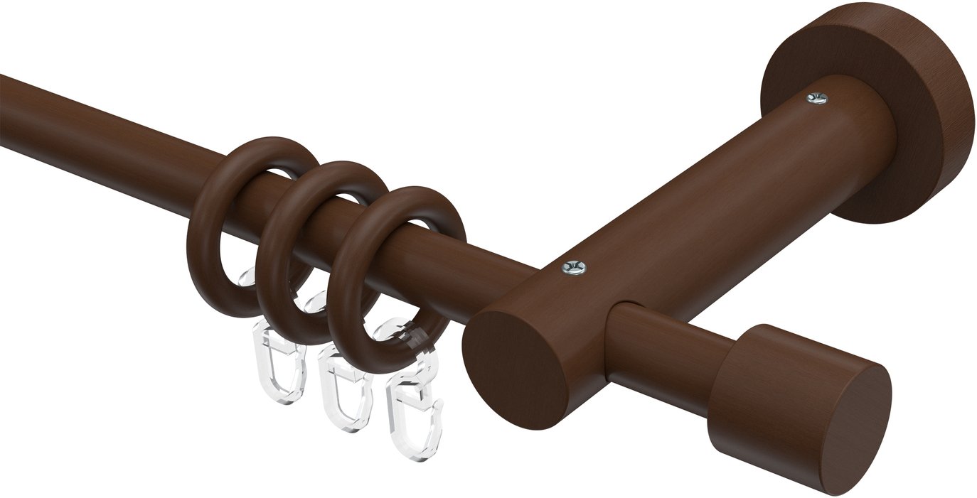 Gardinenstangen aus Holz in 16 mm Ø, 1-läufig, Modell ADRIAN - Pin Nussbaum lackiert
