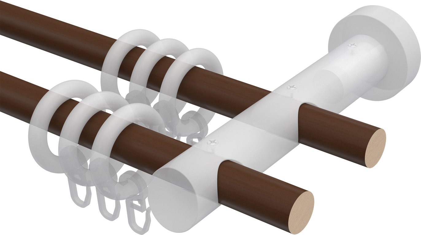 Gardinenstangen aus Holz in 20 mm Ø, 2-läufig, Modell TALENA - Bero Nussbaum lackiert