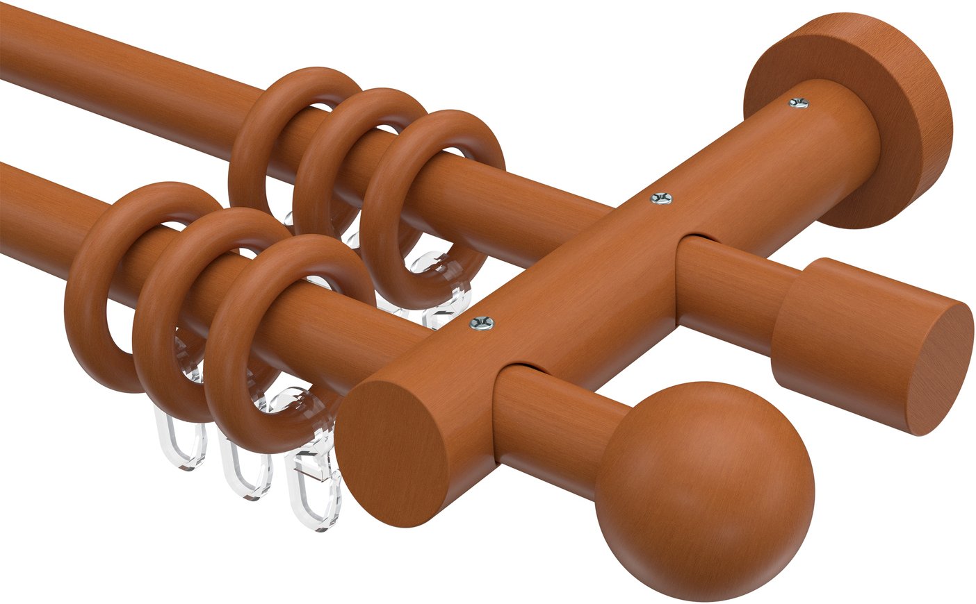 Gardinenstangen aus Holz in 20 mm Ø, 2-läufig, Modell TALENA - Luina Kirschbaum lackiert