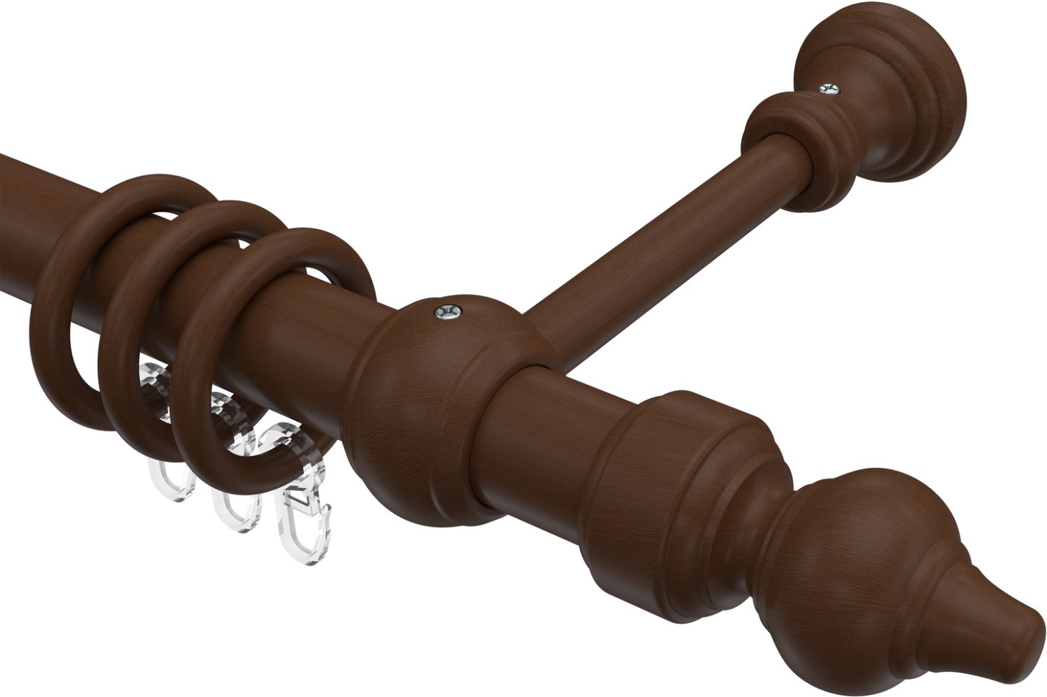 Gardinenstangen aus Holz in 28 mm Ø, 1-läufig, Modell CLASSIC - Rondo Nussbaum lackiert