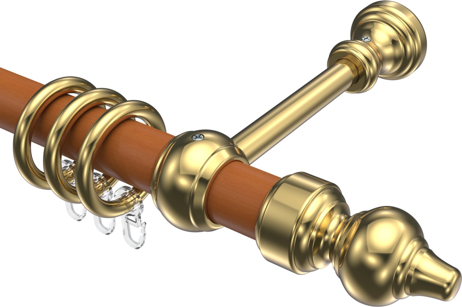 Gardinenstangen aus Holz / Kunststoff in 28 mm Ø, 1-läufig, Modell CLASSIC - Rondo Kirschbaum lackiert / Messing-farbig