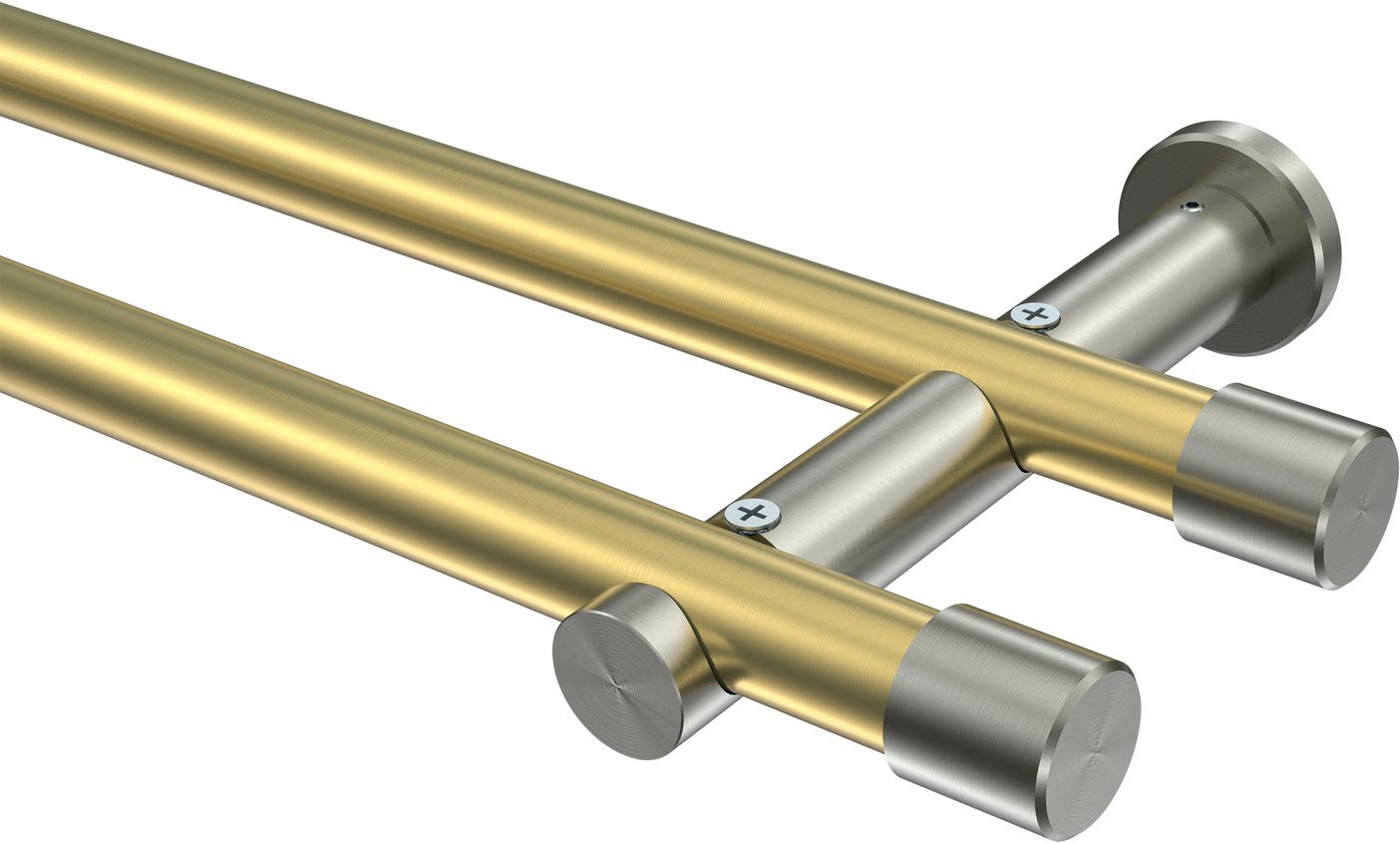Gardinenstangen aus Messing-Optik / Edelstahl-Optik in 20 mm Ø, 2-läufig, 2-läufig, Modell PLATON - Santo (ohne Ringe)