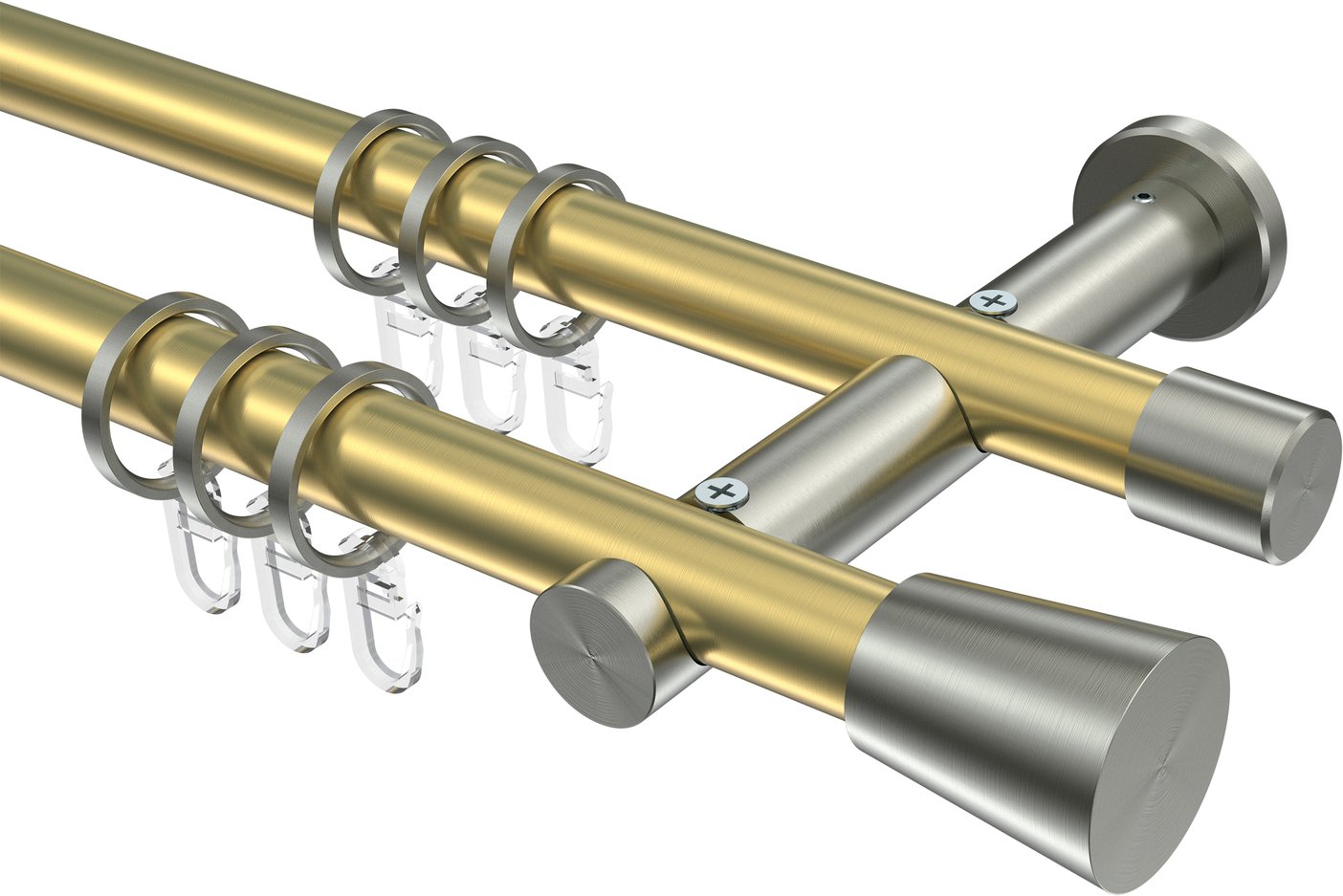 Gardinenstangen aus Messing-Optik / Edelstahl-Optik in 20 mm Ø, 2-läufig, Modell PLATON - Sitra