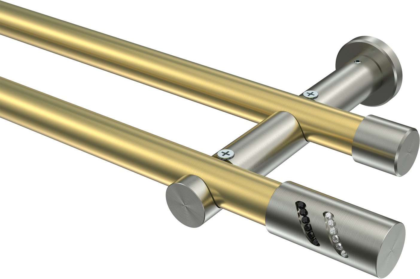 Gardinenstangen aus Messing-Optik / Edelstahl-Optik in 20 mm Ø, 2-läufig, 2-läufig, Modell PLATON - Zoena (ohne Ringe)