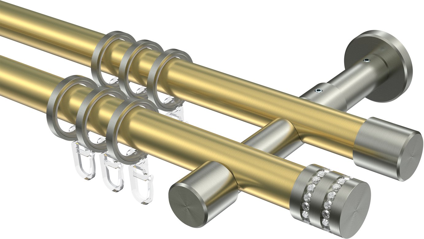 Gardinenstangen aus Messing-Optik / Edelstahl-Optik in 20 mm Ø, 2-läufig, Modell PRESTIGE - Estana