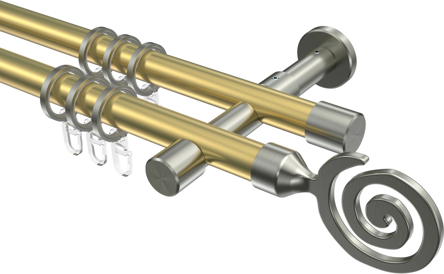 Gardinenstangen aus Messing-Optik / Edelstahl-Optik in 20 mm Ø, 2-läufig, Modell PRESTIGE - Galaxa