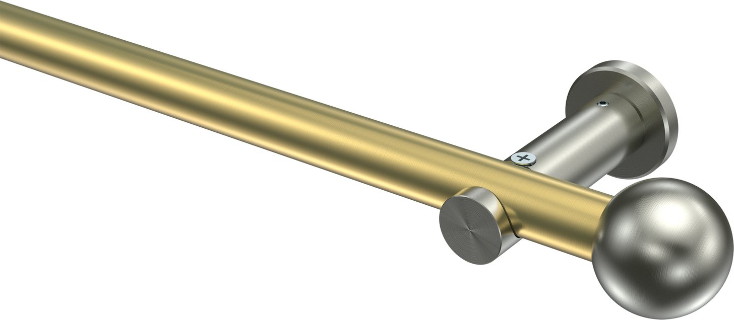 Gardinenstangen aus Messing-Optik / Edelstahl-Optik in 20 mm Ø, 1-läufig, 1-läufig, Modell PLATON - Luino (ohne Ringe)