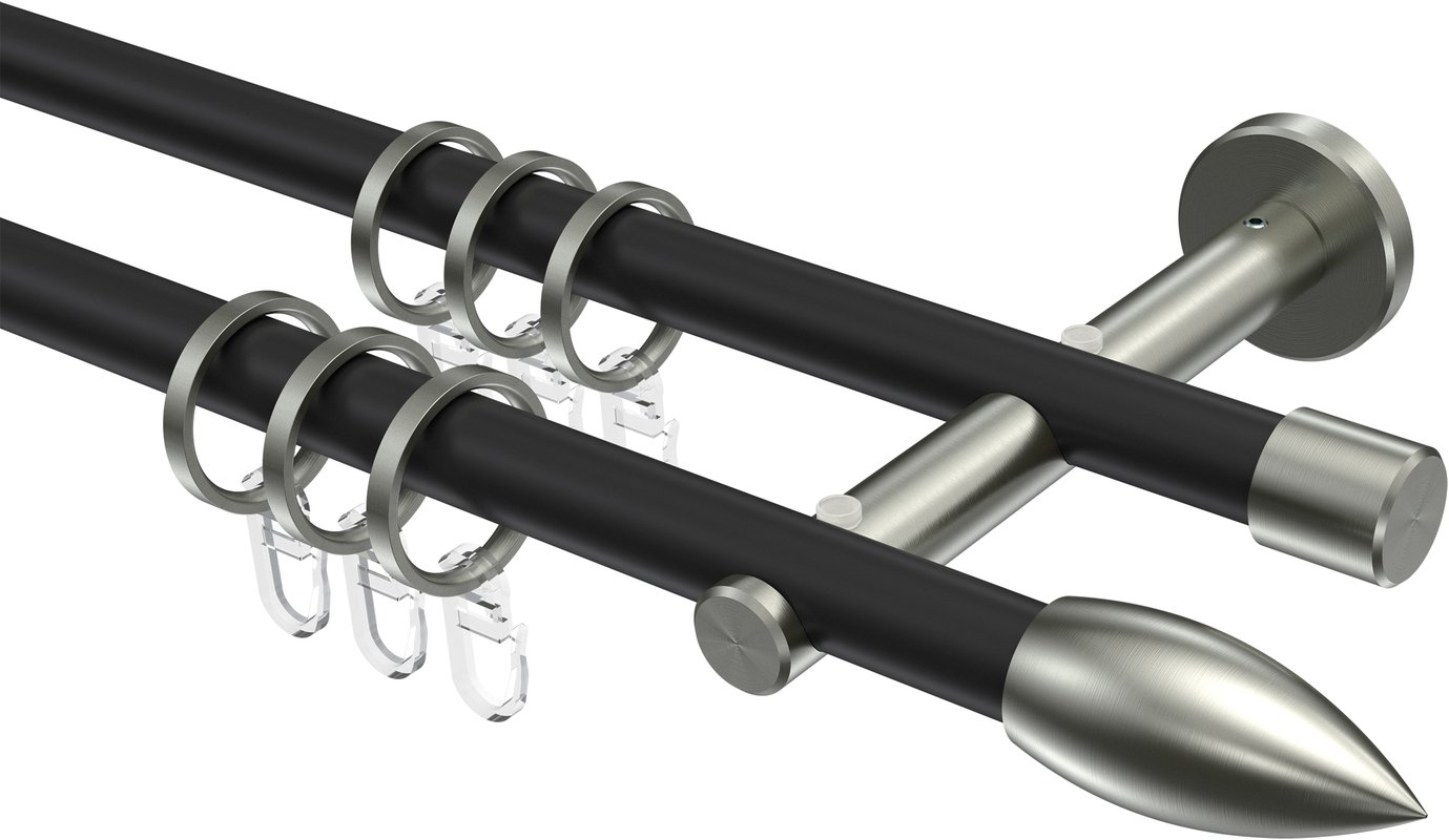 Informationen zu Gardinenstange Metall 16 mm Ø 2-läufig MEDIUM - Poveda Schwarz / Edelstahl-Optik: