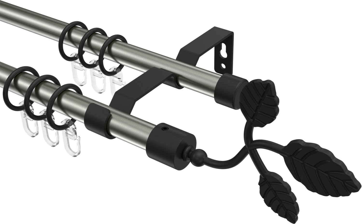 Gardinenstangen aus Metall in 16 mm Ø, 2-läufig, Modell OLYMP - Alessia Edelstahl-Optik / Schwarz