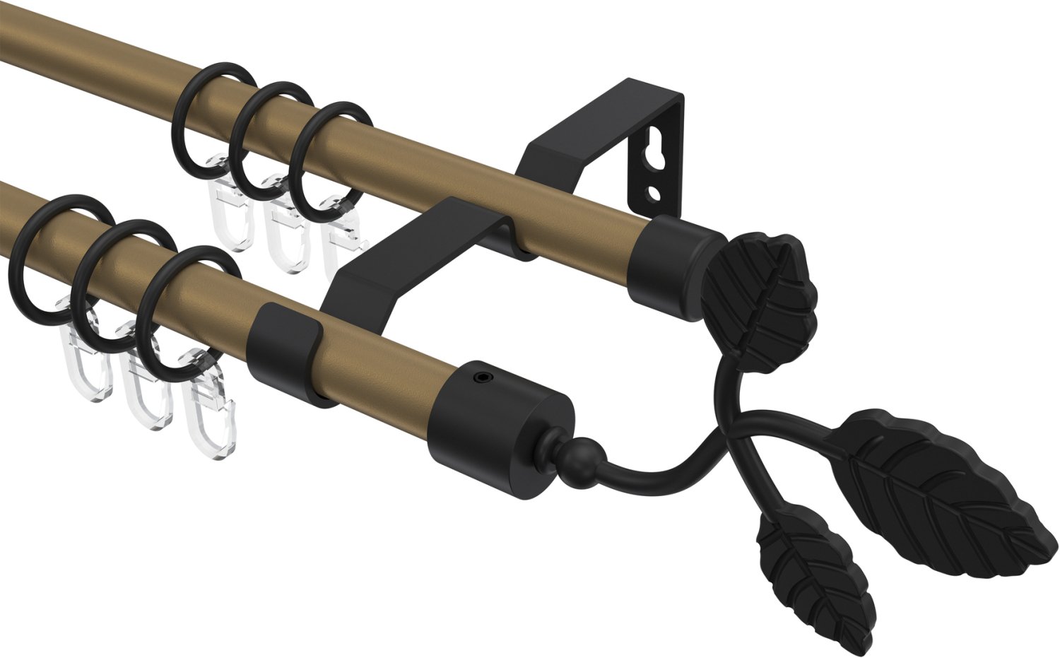 Gardinenstangen aus Metall in 16 mm Ø, 2-läufig, Modell OLYMP - Alessia Gold matt / Schwarz