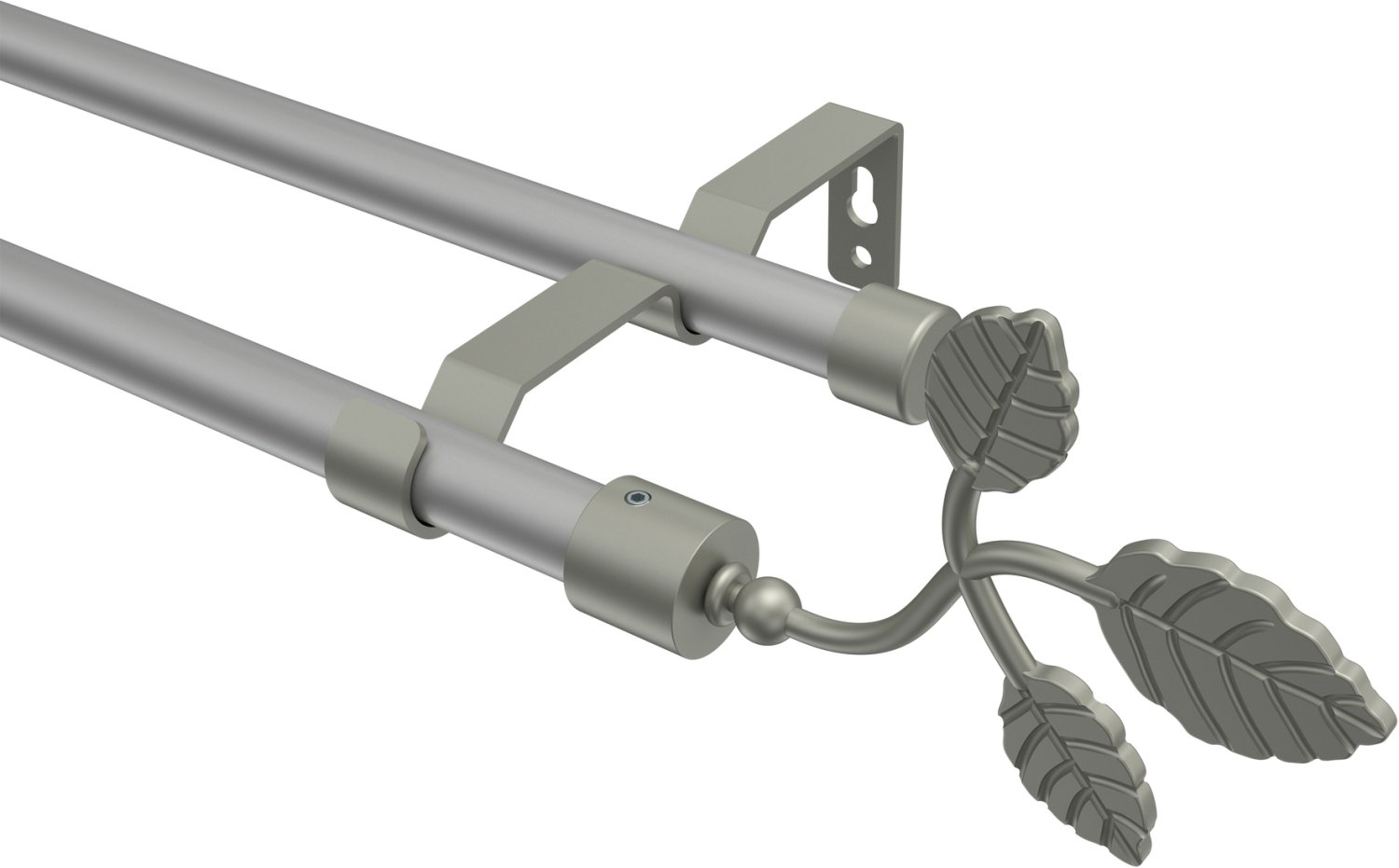 Gardinenstangen aus Metall in 16 mm Ø, 2-läufig, Modell OLYMP - Alessia Silbergrau / Chrom matt (ohne Ringe)