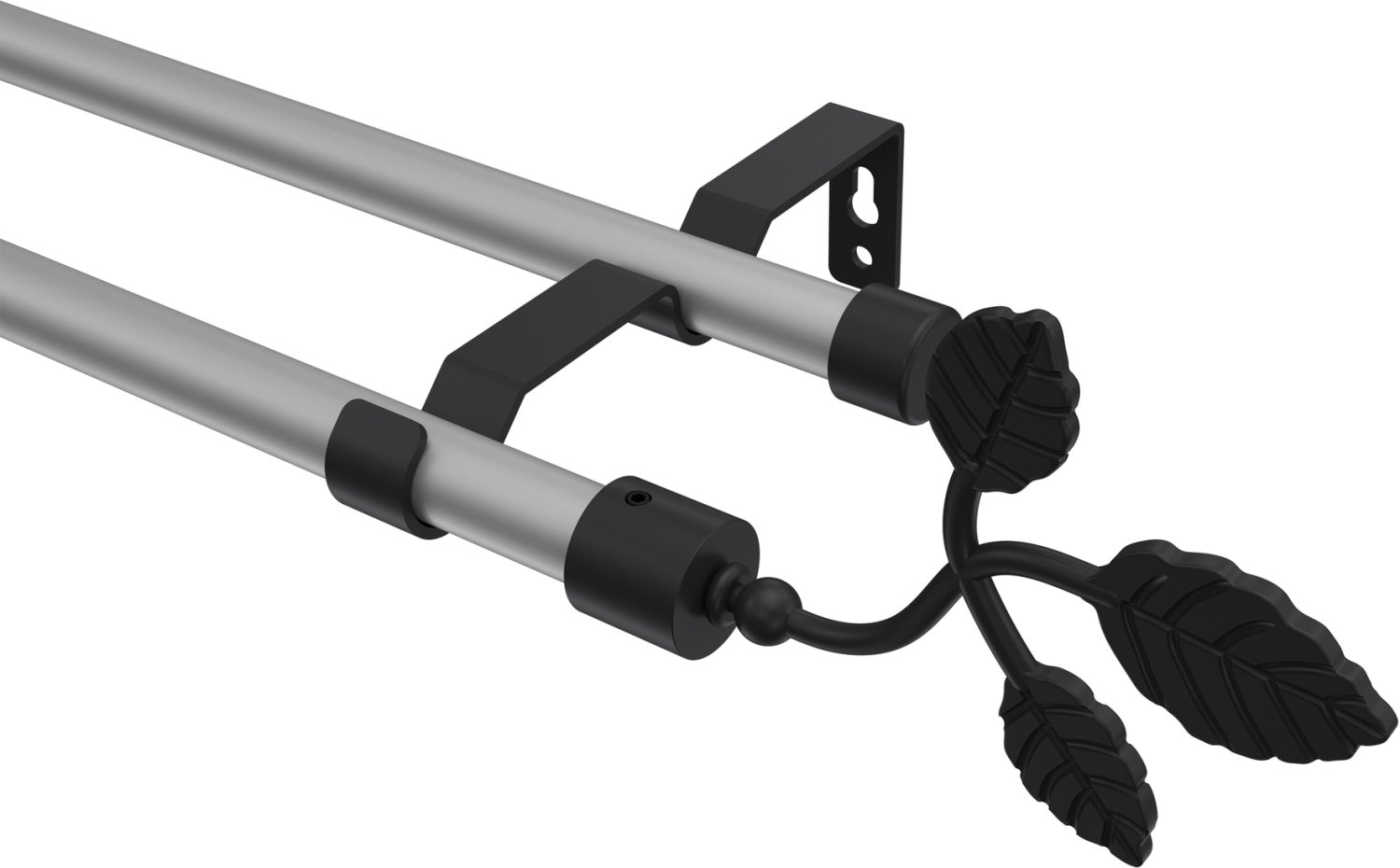 Informationen zu Gardinenstange Metall 16 mm Ø 2-läufig OLYMP - Alessia Silbergrau / Schwarz (ohne Ringe):