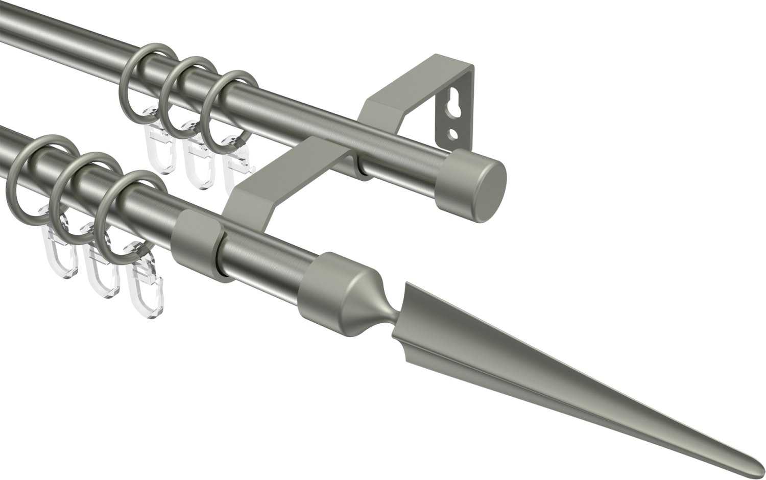 Informationen zu Gardinenstange Metall 16 mm Ø 2-läufig OLYMP - Lorenzo Edelstahl-Optik / Chrom matt:
