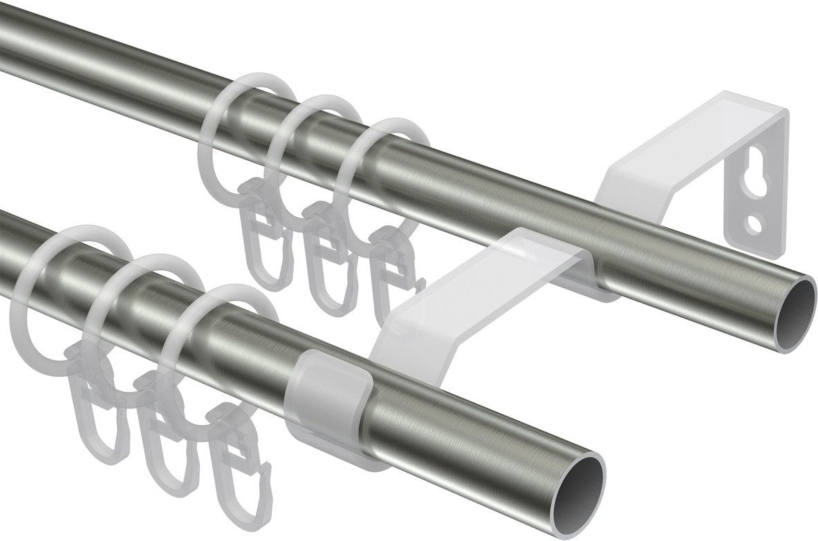 Gardinenstangen aus Metall in 16 mm Ø, 2-läufig, Modell OLYMP - Lorenzo Edelstahl-Optik / Messing Antik