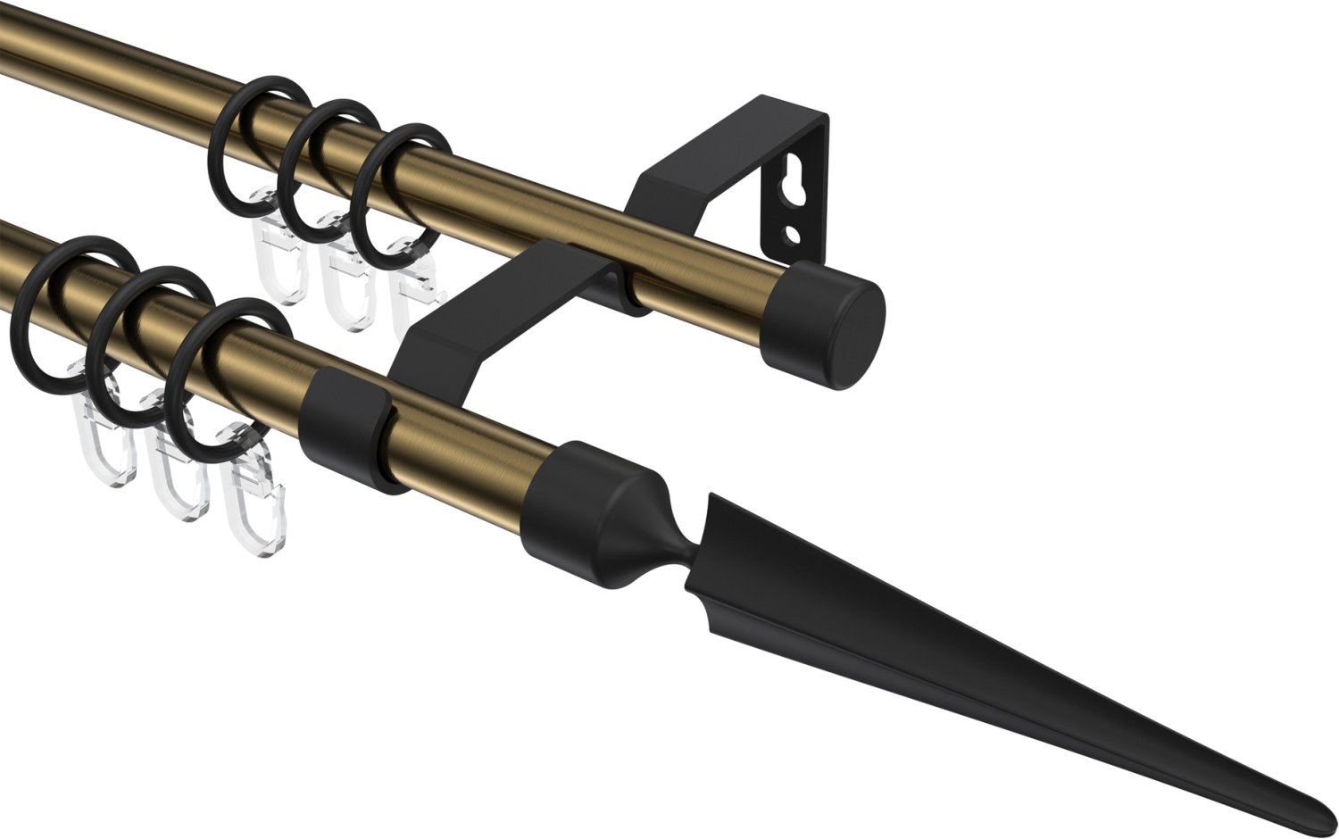 Gardinenstangen aus Metall in 16 mm Ø, 2-läufig, Modell OLYMP - Lorenzo Messing Antik / Schwarz