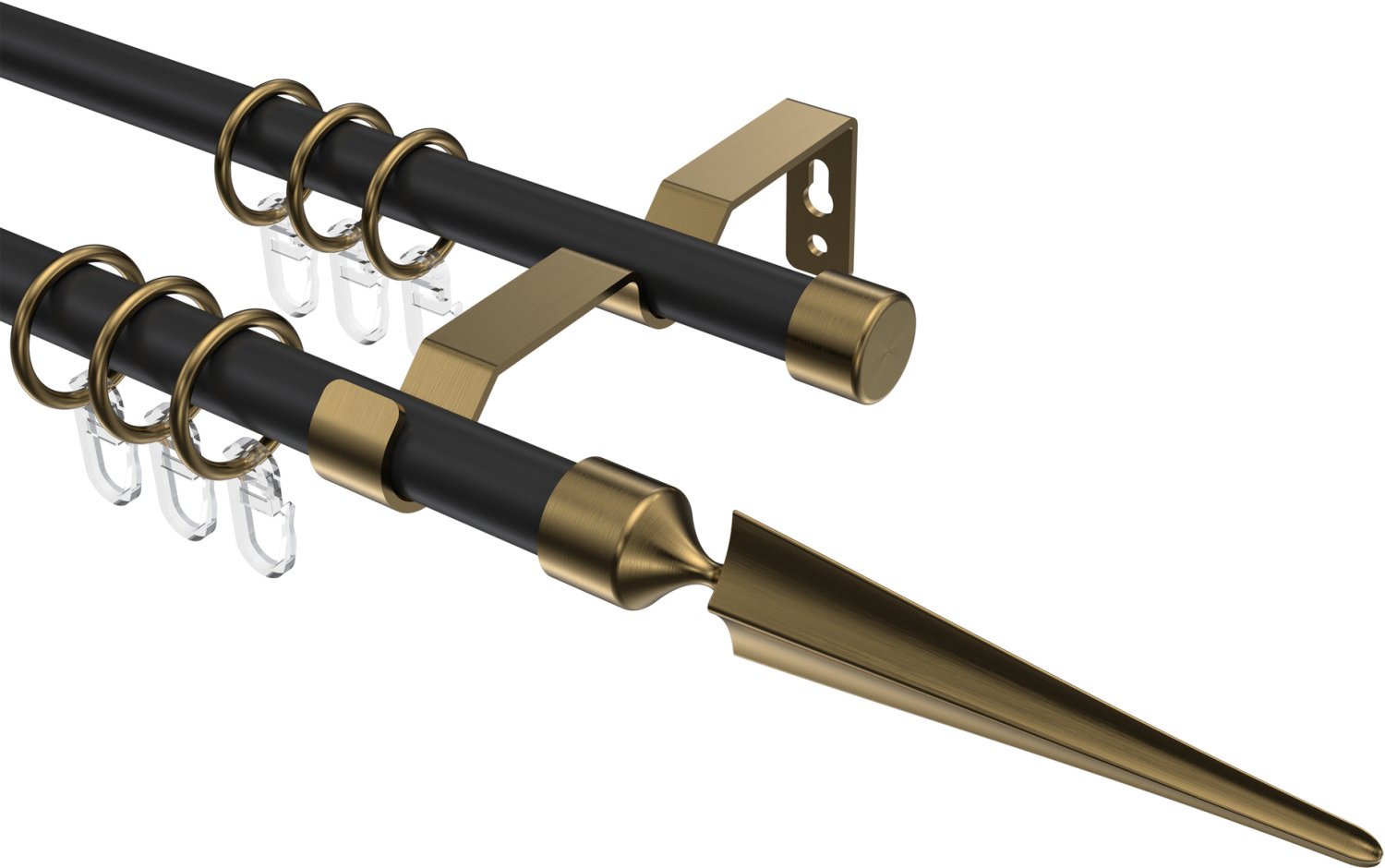 Gardinenstangen aus Metall in 16 mm Ø, 2-läufig, Modell OLYMP - Lorenzo Schwarz / Messing Antik