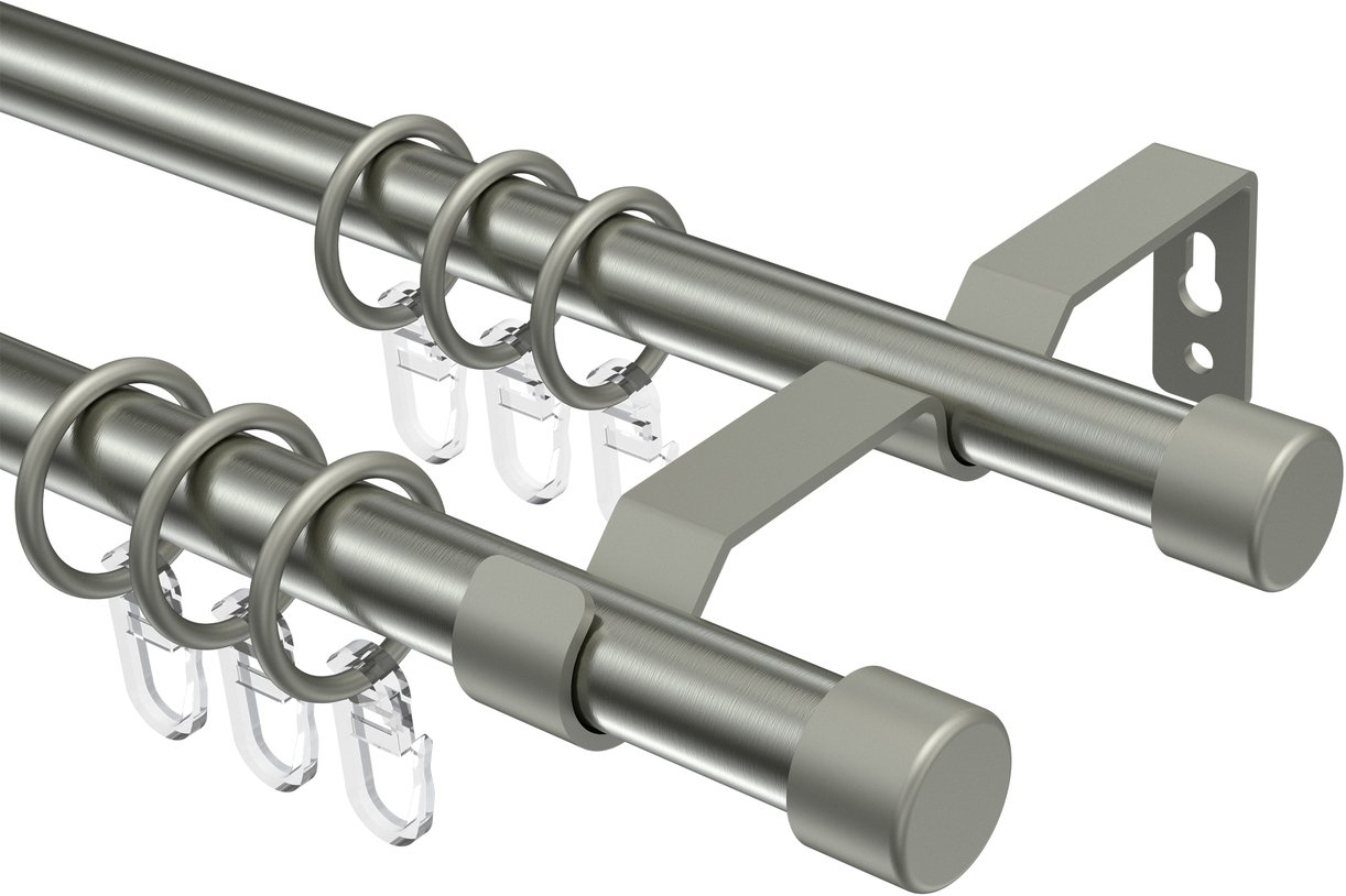 Gardinenstangen aus Metall in 16 mm Ø, 2-läufig, Modell OLYMP - Lucan Edelstahl-Optik / Chrom matt