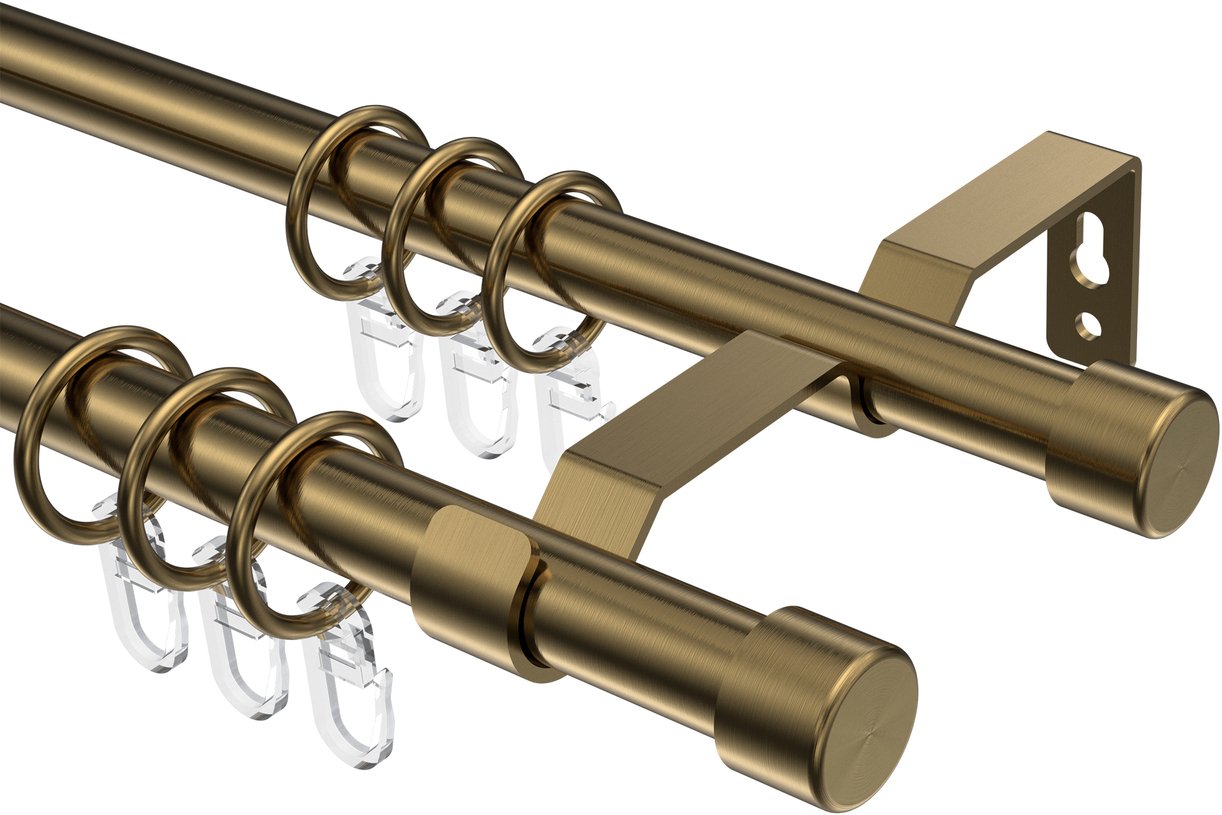 Gardinenstangen aus Metall in 16 mm Ø, 2-läufig, Modell OLYMP - Lucan Messing Antik