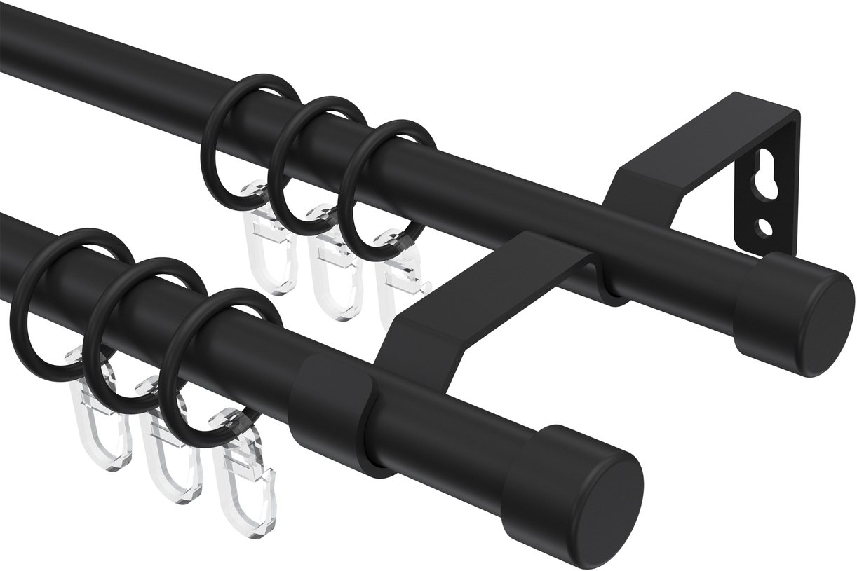 Gardinenstangen aus Metall in 16 mm Ø, 2-läufig, Modell OLYMP - Lucan Schwarz