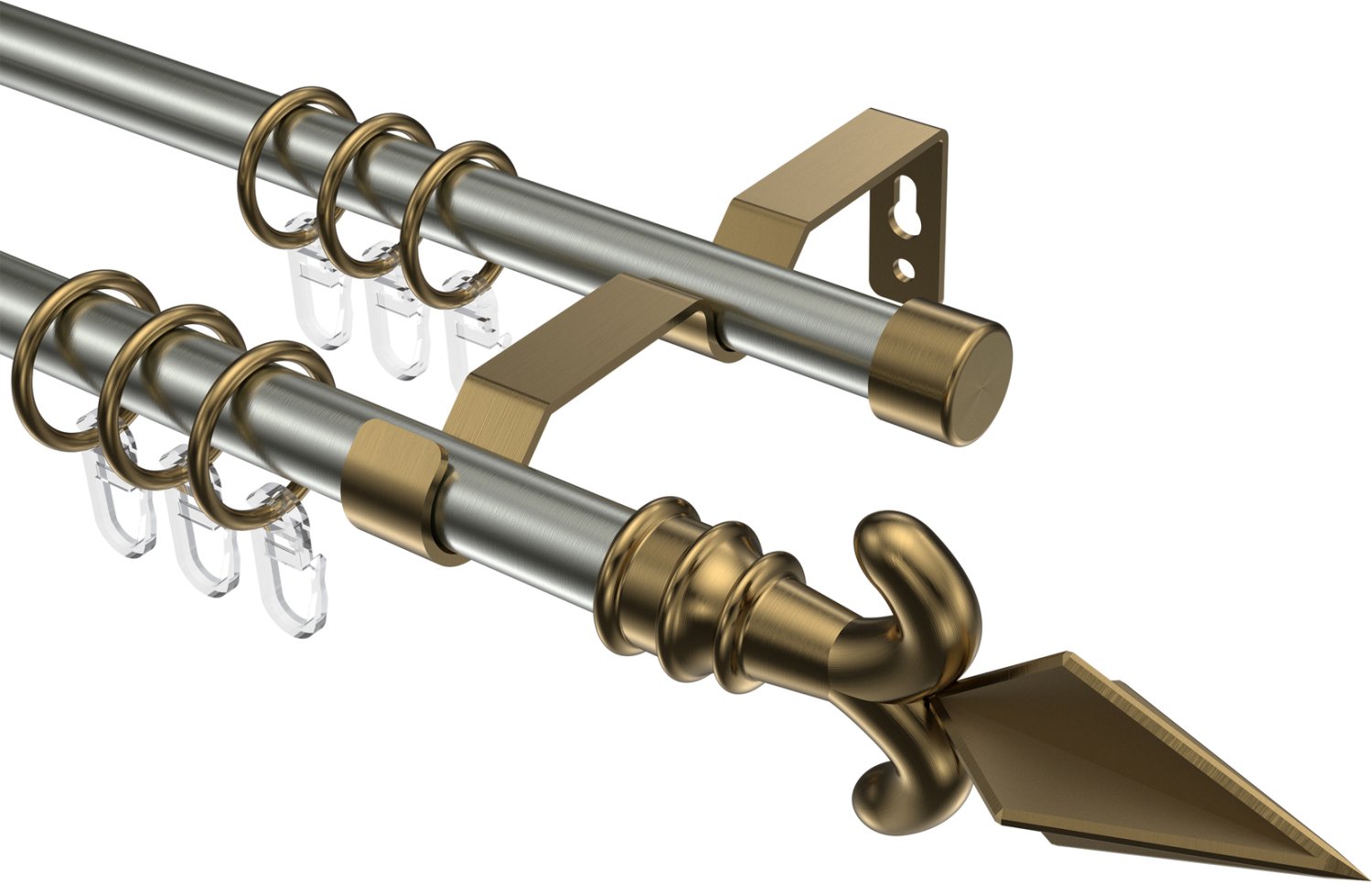 Informationen zu Gardinenstange Metall 16 mm Ø 2-läufig OLYMP - Matteo Edelstahl-Optik / Messing Antik: