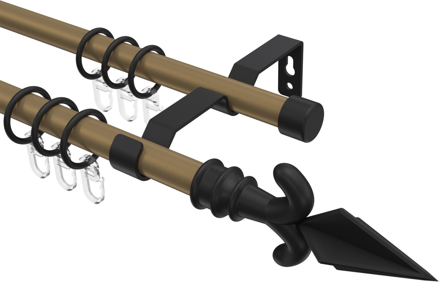 Gardinenstangen aus Metall in 16 mm Ø, 2-läufig, Modell OLYMP - Matteo Gold matt / Schwarz