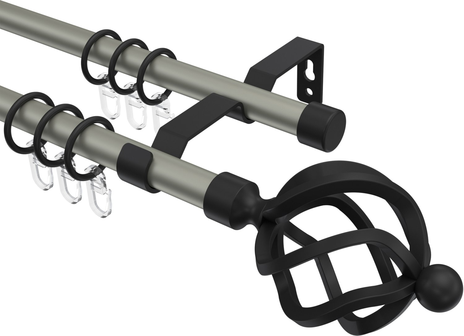 Gardinenstangen aus Metall in 16 mm Ø, 2-läufig, Modell OLYMP - Paolo Chrom matt / Schwarz