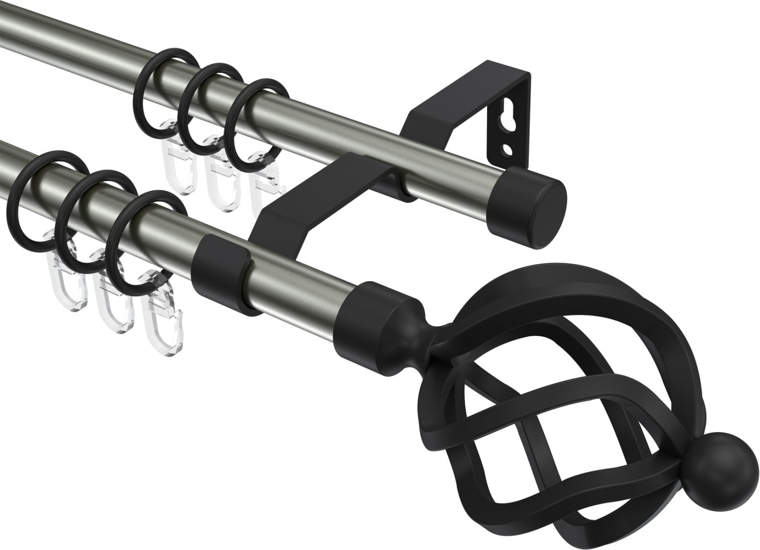 Informationen zu Gardinenstange Metall 16 mm Ø 2-läufig OLYMP - Paolo Edelstahl-Optik / Schwarz: